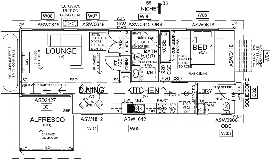 This project included raked and square-set ceilings, a galley kitchen with waterfall stone benchtops, LED glass display cabinetry, a glass splashback, and upgraded pantry fittings. The en-suite adds full-height tiling, a frameless shower with a niche and strip drain, tile insert drains, and a quality wall-mounted vanity. Further scope includes luxury vinyl planks, premium carpet, split-system air conditioning, downlights, and ceiling fans, a separate laundry with a second toilet, detailed exterior cladding with square architraves, a split skillion gable roofline, and a covered alfresco—total construction cost (as of 2020): $190,561, excluding landscaping.