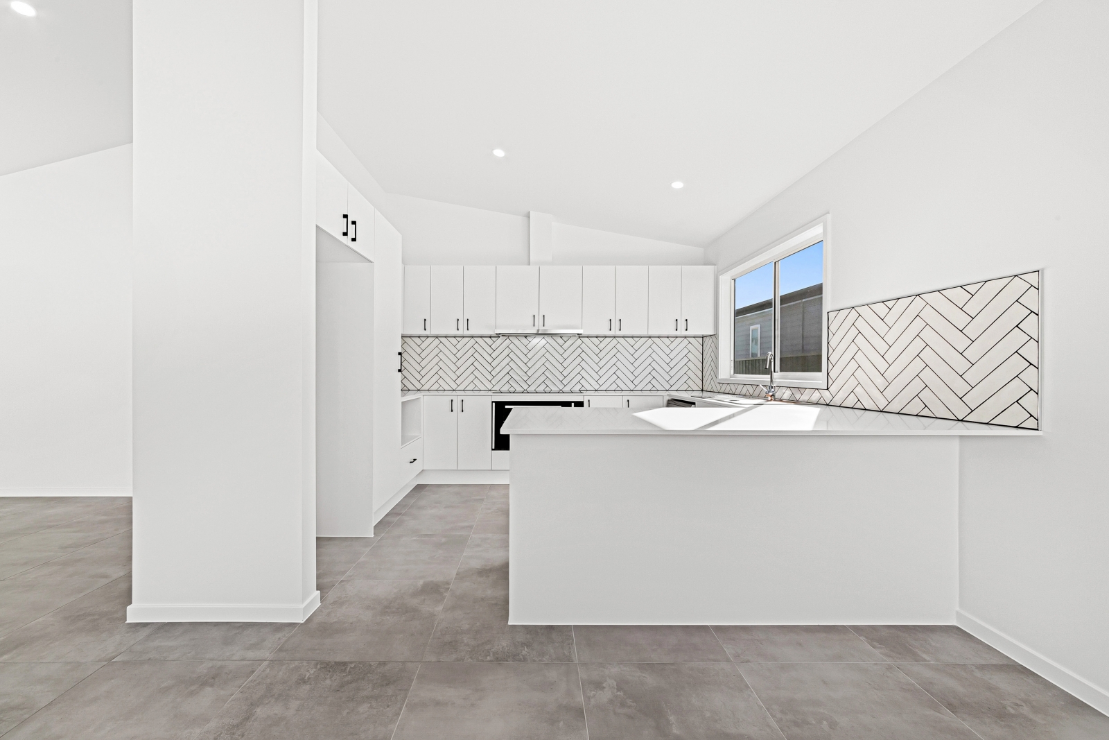 - Subway tiles in a herringbone pattern for the kitchen splashback