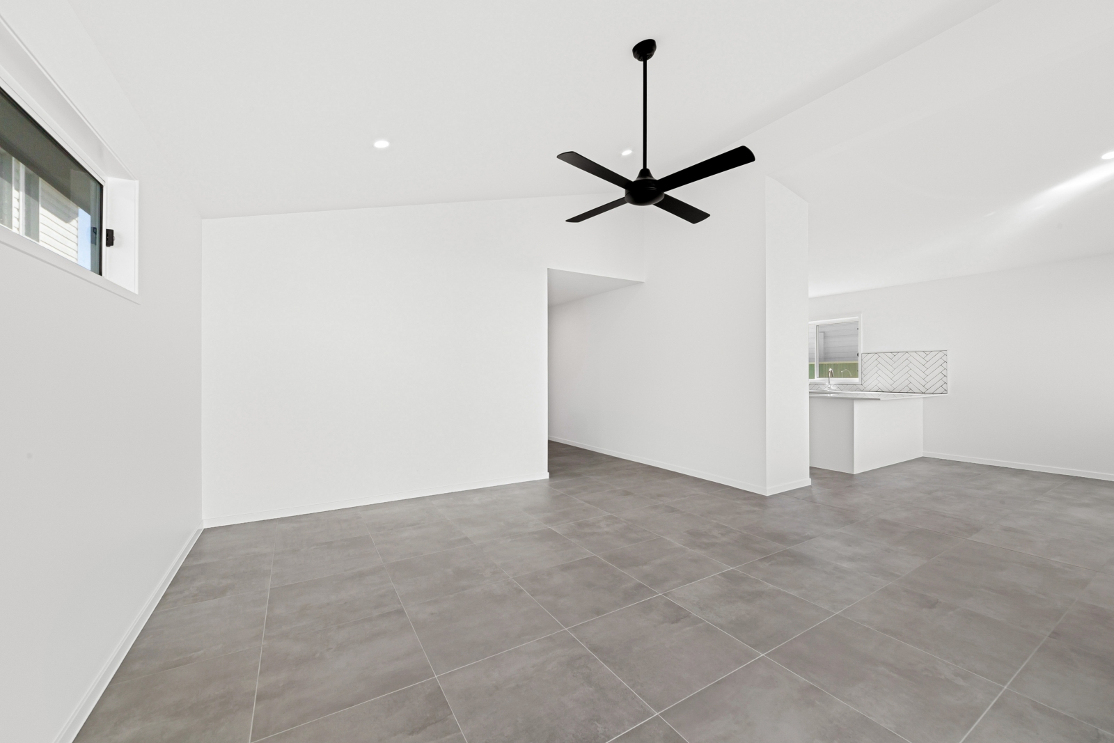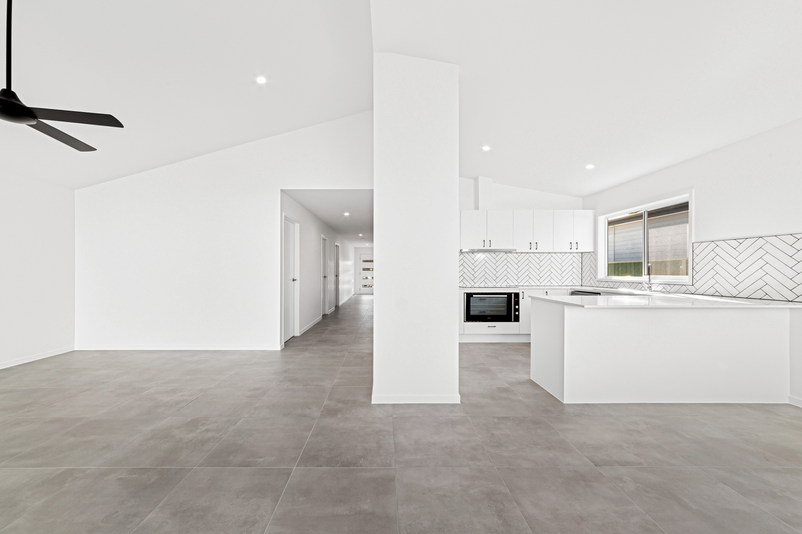 - 600 x 600mm floor tiles in the hallway, living, dining and kitchen areas