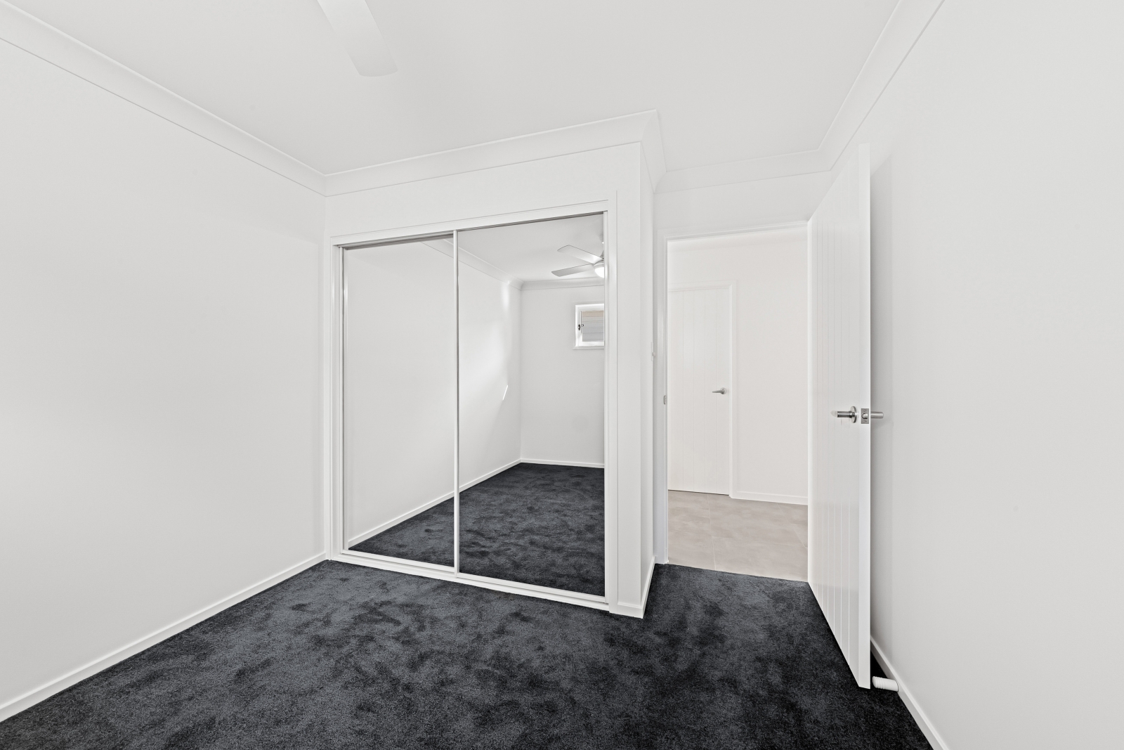 - Mirrored wardrobe doors fully fitted out with internal joinery