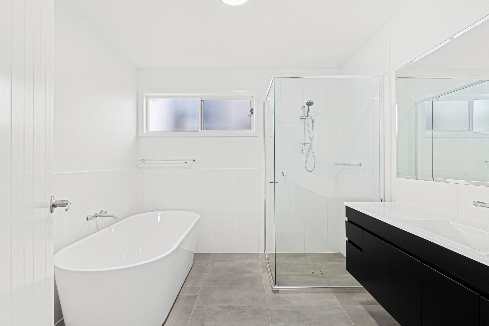 - Semi-frameless shower screen in the main bathroom
